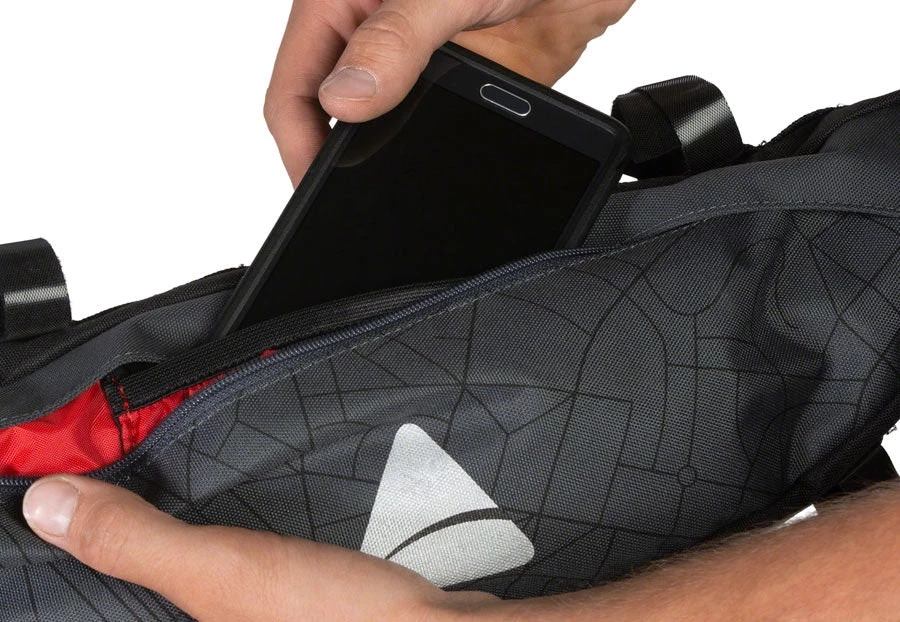 Soft-lined phone pocket is large enough to hold most modern phones