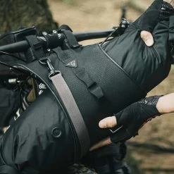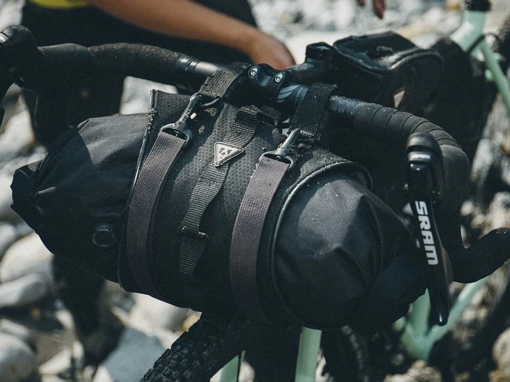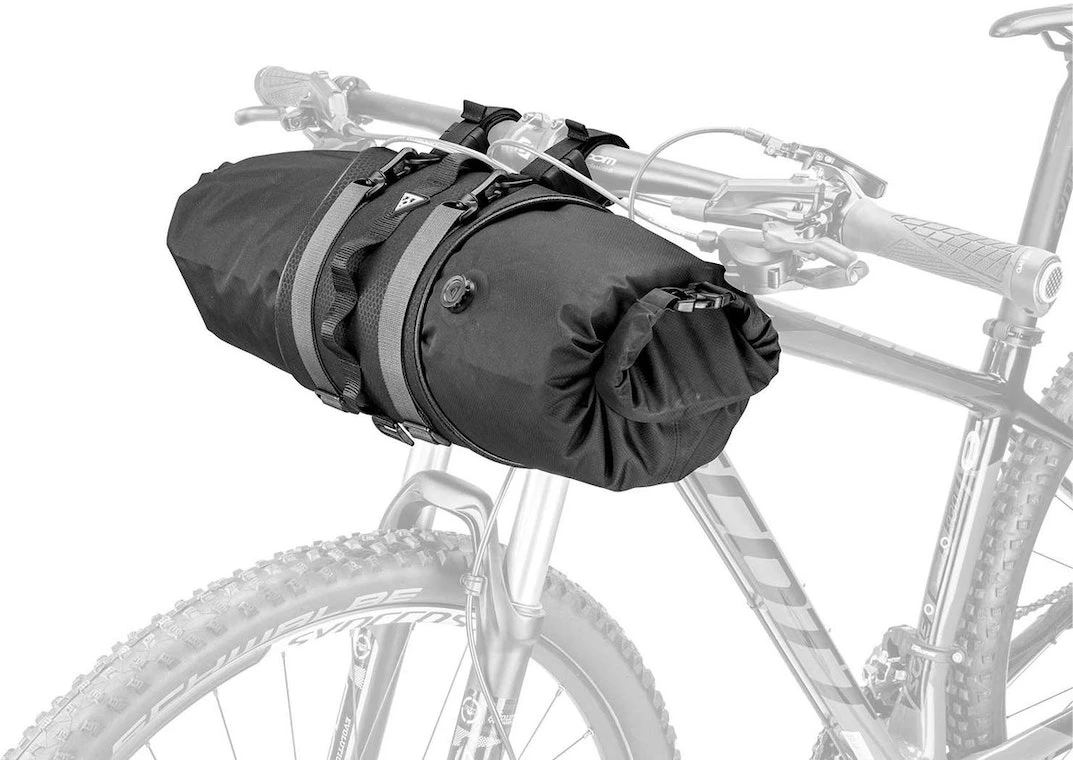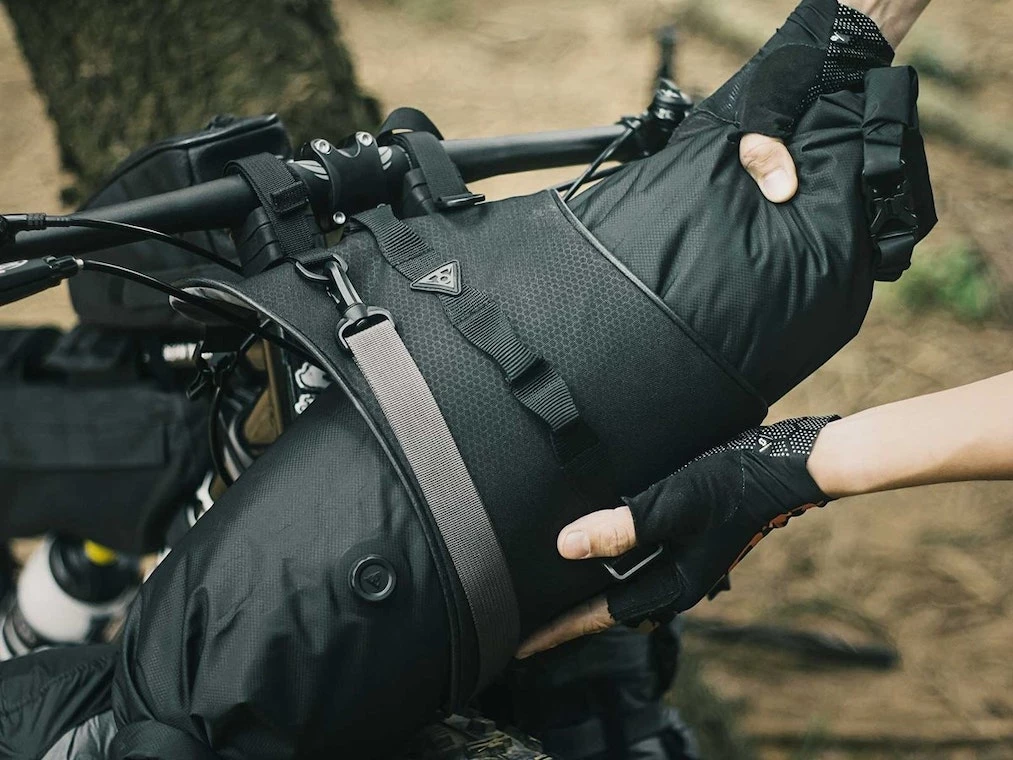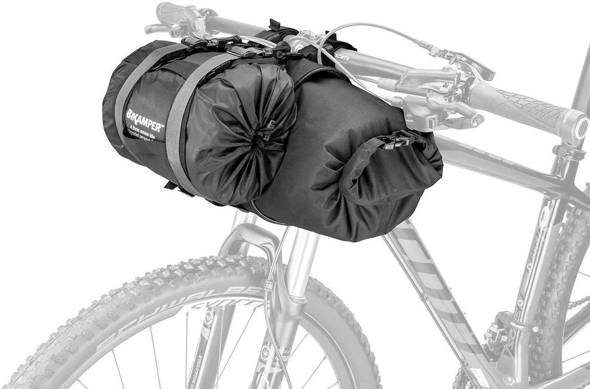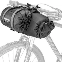 Pack all the gear you need and enjoy the freedom of bikepacking. FrontLoader is perfect for carrying light yet bulky items like sleeping bags, camping gear and spare clothing. Featuring a tough outer support harness and constructed of durable abrasion- and water-resistant materials, it’s easily installed or removed with two straps, special spacer mounts, and quick-release buckles. A backside head tube strap attachment increases load stability. An 8-liter removable waterproof drybag keeps contents completely protected from wet weather and splashes while a built-in air release button purges unwanted air from the bag to effectively compress its contents.