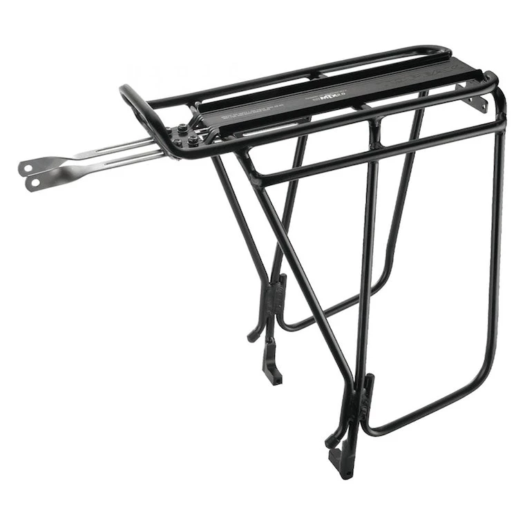 Fits 26″, 27.5″(650B) & 700C Wheels w/ Disc Brakes Our toughest tubular aluminum rear rack designed for heavy-duty, long distance touring. Specifically developed for bikes equipped with disc brakes. Integrated side bar provides a lower pannier attachment point-allowing more space for cargo on the rack top. QuickTrackยฎ compatible for use with any MTX TrunkBag, rear basket and pannier bag.