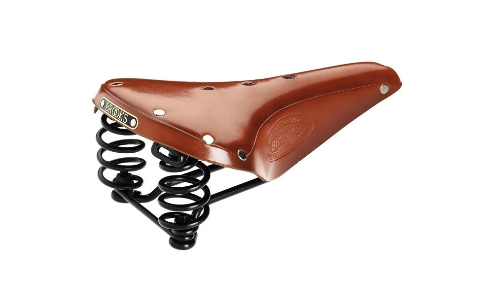The Flyer & its ladies model Flyer S are classically sprung saddles for long distance trekking & touring. It is directly descending from the B66 Champion, first featured in the 1927 catalogue. Sharing the same leather tops of the B17 models, they combine the comfort of these popular models with the extra suspension granted by two rear springs. Both are available with tubular steel rivets or with hand hammered copper rivets under the names of Flyer Special & Flyer S Special.