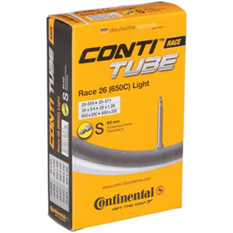 The new ContiTube bicycle tube program makes it easier for you to find the ideal tube for your cycling demands. The user-friendly tube system is suitable for any size, length, design, type of valve & perfect for any tyre dimension & riding occasion. Varying tube types can affect your tyresโ handling characteristics: the Standard tube, available in all dimensions is the best choice for everyday cycling whilst Light & Supersonic varieties give racers the option of lower rotating weight, therefore increasing speed. The lightweight tubes have a lower thickness & so it is imperative that inflation pressures are maintained to prevent the risk of pinch flats.