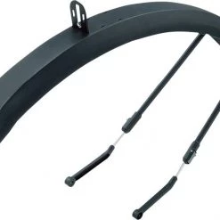 DeFenderโข TX is a compact trekking bike fender set. Adjustable aluminum struts with QR levers for quick, perfect alignment and good tire coverage. The DeFenderโข TX set is made of high impact plastic and the highly polished underside prevents dirt buildup. Fits tires up to 700 x 44c.