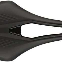 The purposeful shape of its design helps you achieve a better riding posture: the dropped nose supports the pubic ramus when the pelvis rotates forward to add power or to get more aero.