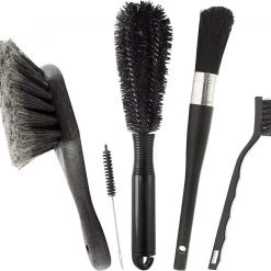 - 5 Different brushes to tackle any cleaning job . 2.Great for cleaning bicycles, motorcycles, and automobiles. 3. Includes chain for hanging after use. 4. User guide on back of card.