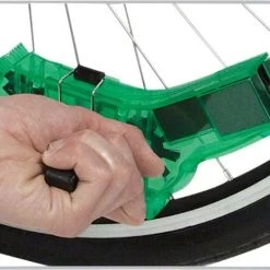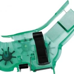 - Clips right onto the chain, no need to remove the chain from the bicycle. 2. 30 degree exit angle eliminates messy drips and an oversized magnet at the bottom collects metal filings and various contaminants. 3. 3-Brush rotating brush design and scrubber pads clean the chain fast, usually in less than 1 minute. 4. Heavy-Duty industrial quality resin body withstands shop use and will not crack when dropped off a work bench.