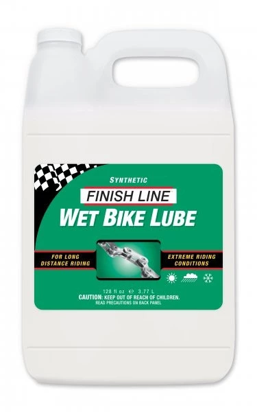 Finish Line WET Lube (Cross Countryโข). An โextremeโ lube; super durable high viscosity synthetic oils, special polymers, anti-wear additives, friction modifiers, and more, all combine to make this Finish Lineโs strongest, longest lasting, most water resistant lubricant. WET Lube goes on wet and stays wet on the chain. Recommended for long-distance riding and extreme weather conditions. If you use WET Lube for riding off-road or in dry climates, be sure to wipe the excess from parts; this will help minimize the attraction of dirt and grime. Since 1994, when this lube was first introduced, it has become the preferred lubricant for many professional on and off-road teams world-wide. Use WET Lube when you ride hard and long. Proven performance for 100-plus mile rides, muddy off-road conditions, long rainy commutes, and foggy salt-air coastal climates. A heavier, wet-style lubricant that requires a little more attention to drivetrain cleanliness, but delivers the ultimate in lubricity and protection.