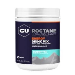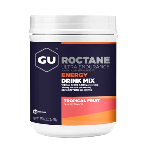 Created for high-intensity and demanding activity, GU Roctane Energy Drink Mix packs even more electrolytes and carbohydrates than GU Hydration Drink Mix. The 250-calorie serving contains carbohydrates (maltodextrin and fructose) that use non-competing pathways to help maximize carbohydrate absorption and utilization while diminishing stomach distress. Sodium, the primary electrolyte lost in sweat, aids hydration by maintaining water balance. The amino acid taurine helps maintain heart contractility and improve cardiac output during long exercise sessions, while the amino acid beta-alanine helps promote formation of the intramuscular buffer carnosine.
