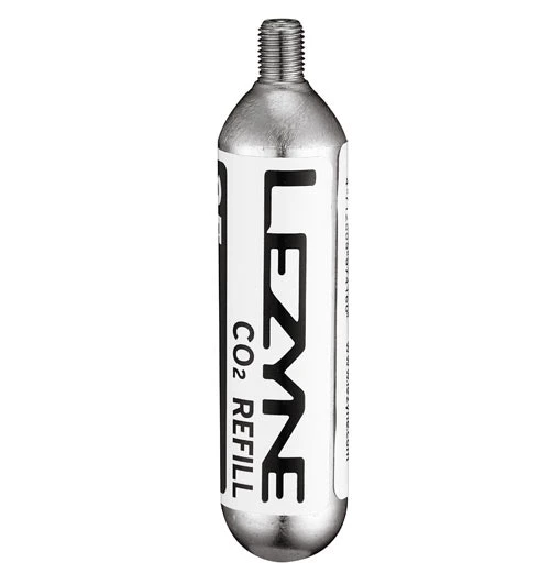 Threaded CO2 cartridges for use with all Lezyne CO2 inflators. 25g CO2 cartridges contain a larger charge suitable for high volume MTB tires. Available as 5-piece refill packs or counter top boxes (20 quantity for 25g cartridges).