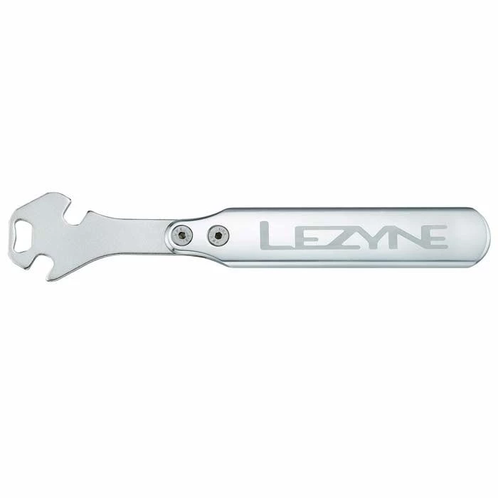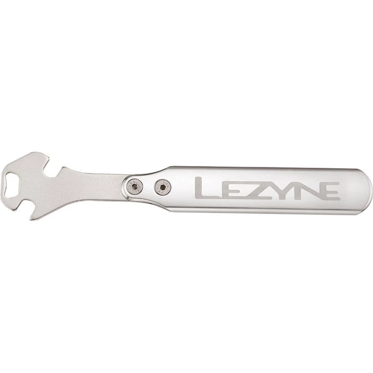 A heavy-duty, shop quality pedal wrench designed with two 15mm offset wrench openings positioned for optimal leverage & ease of use. The tool head is made of a stamped, CNC machined, & heat-treated steel plate & has an integrated bottle opener. 100% aluminum handle is CNC machined for precision, strength, & durability.