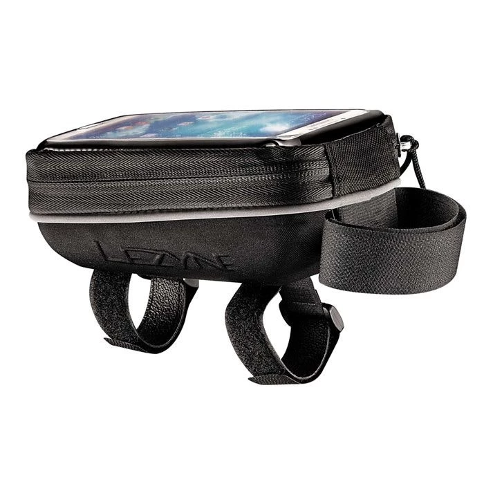 The Lezyne Smart Energy Caddy is a lightweight, semi-rigid, top tube mounted smart phone caddy made from molded EVA foam halves with a durable woven nylon cover. Its clamshell pod design opens to provide easy access, & a mesh divider helps keep items in place. The Smart Energy Caddy’s smart phone pocket holds any popular 4-5″ phone model, & features a clear touch screen compatible panel for full control of your phone. Three velcro straps attach your caddy to your bike’s top tube.