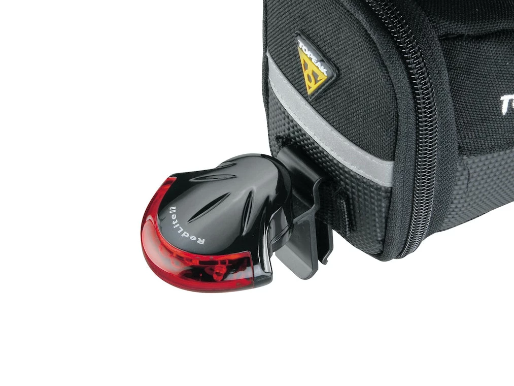 A water resistant, ultra-bright 4 LEDโs tail light with wrap-around lens. Features constant and blinking modes for increased visibility.