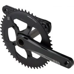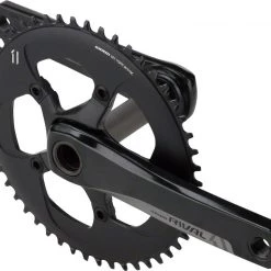 Top-of-the-line road crankset with carefully shaped Exogram hollow carbon fiber arms for high stiffness-to-weight ratio and sturdy chainrings optimized for the Yaw front derailleur.