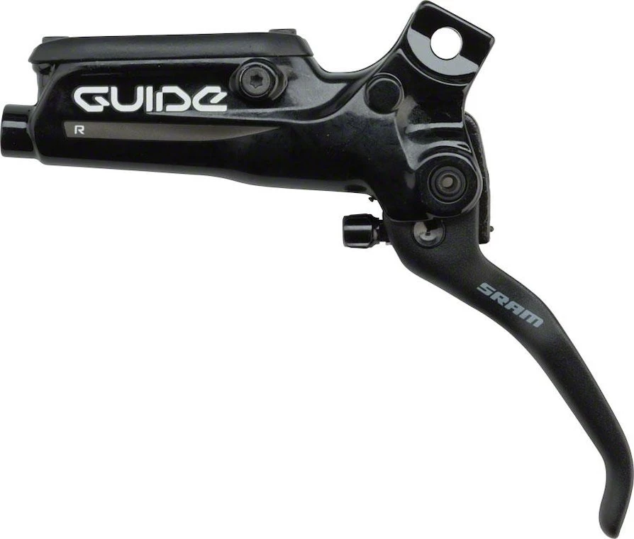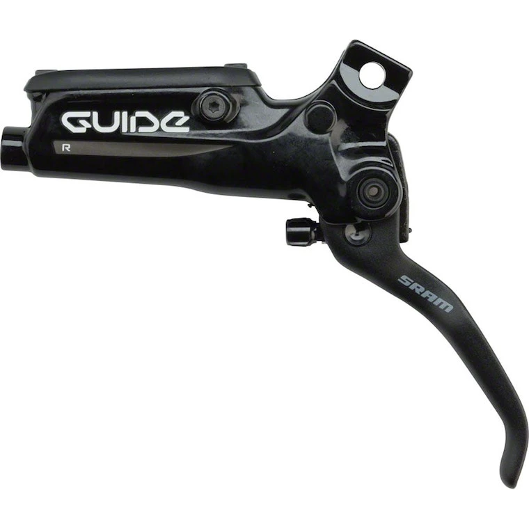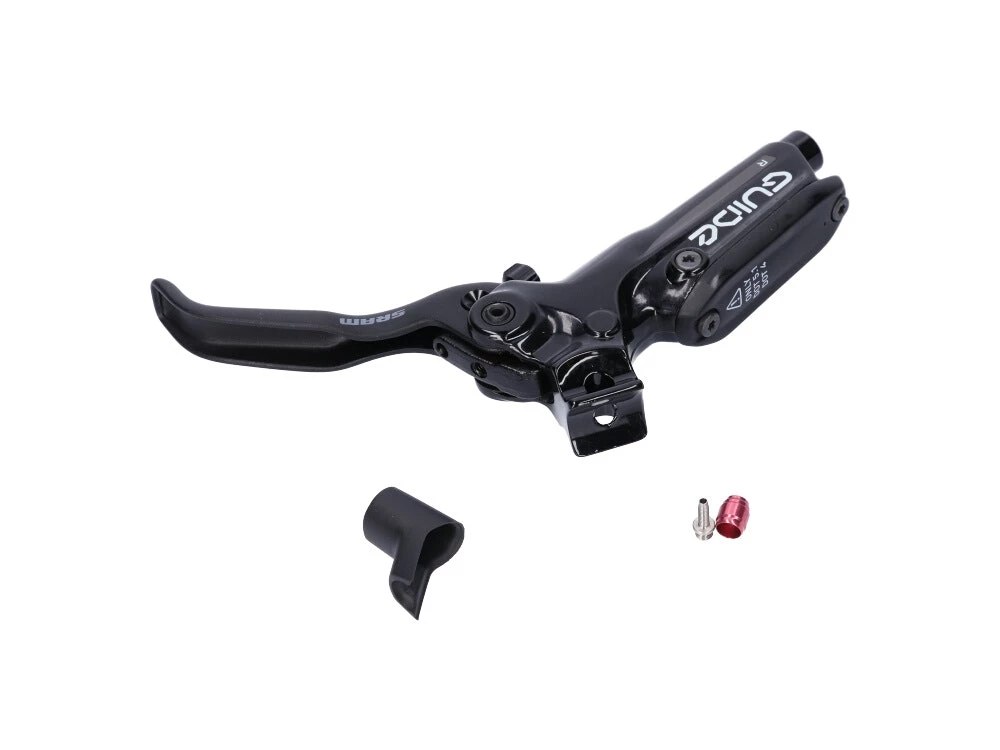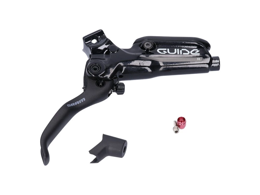 Complete original replacement brake lever for Guide R brakes. Brake lever and handle body are made of aluminum. A cable fastening kit is included in the scope of delivery for connection to the brake line.
