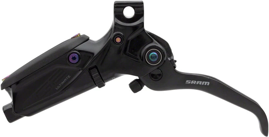 Complete hydraulic lever (master cylinder) assembly without caliper. Ambidextrous design allows the same part to be used as either a right or left lever.