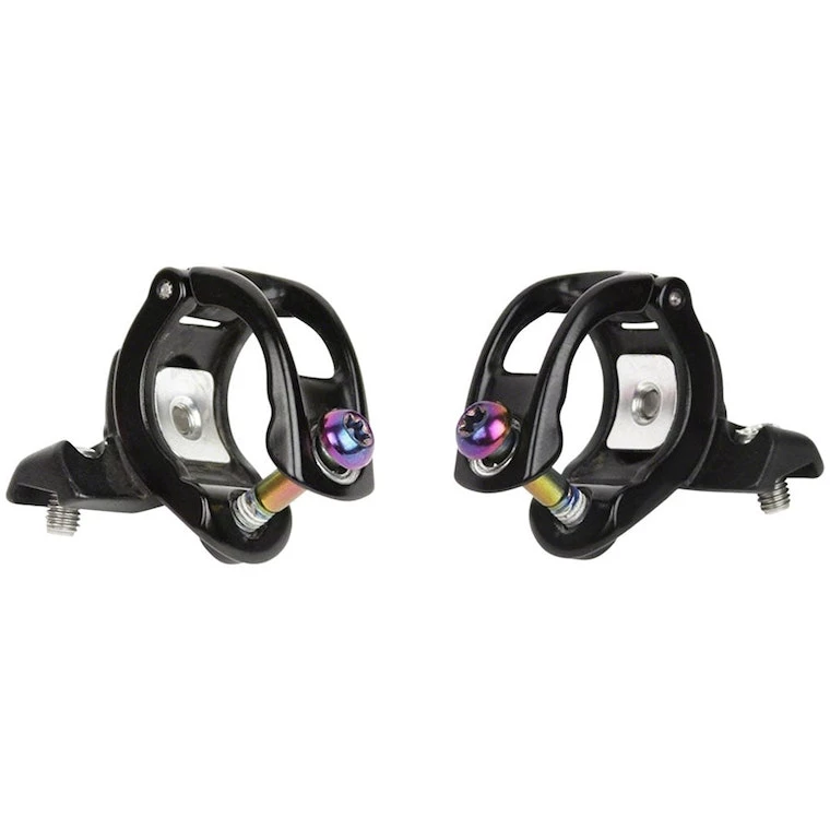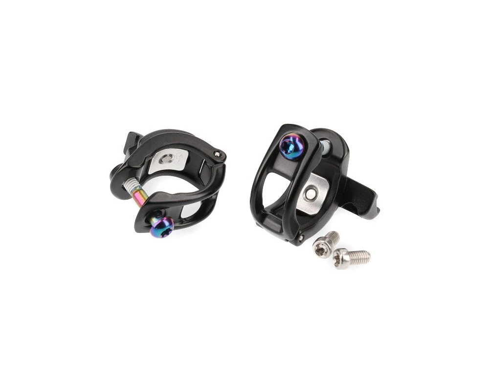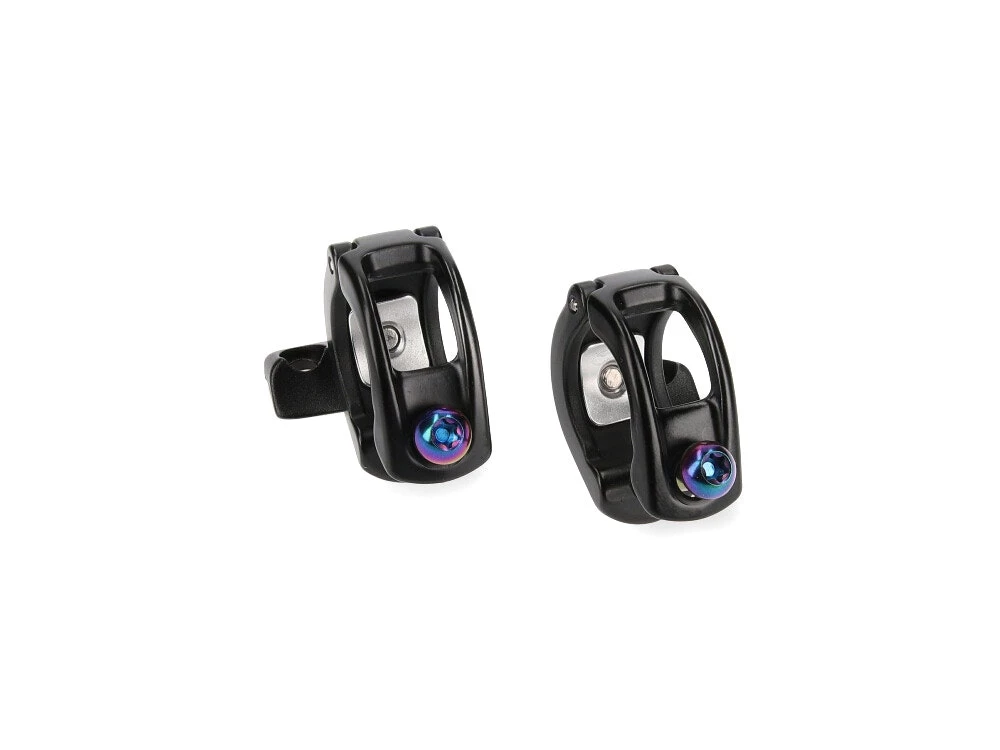 The popular MatchMaker X (MMX) from SRAM now in the trendy rainbow finish! They are used to attach the brake, trigger, X-Lock lockout lever and reverb remote control for the seat post and save up to 3 clamps on the handlebar. Thus, they create a lot of space and overview on your cockpit. Due to its foldable design, the assembly is very easy, so it is no longer necessary to disassemble the handles around a closed clamp on the handlebars.