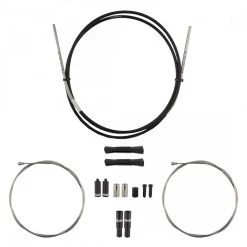 Slick Wire brake cable set for use on racing bikes for mechanical rim or disc brakes. The set includes all the small parts required to assemble the front and rear brakes. The polished 1.5 millimeter stainless steel cables ensure extremely low friction. A Kevlar reinforced outer shell with greased inner liners is almost incompressible and ensures a loss-free transmission of the braking force. For use on linear pull brakes, the outer shell has special end pieces for optimal power transmission.