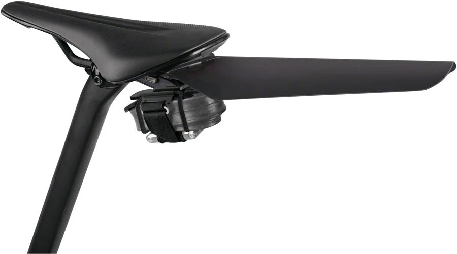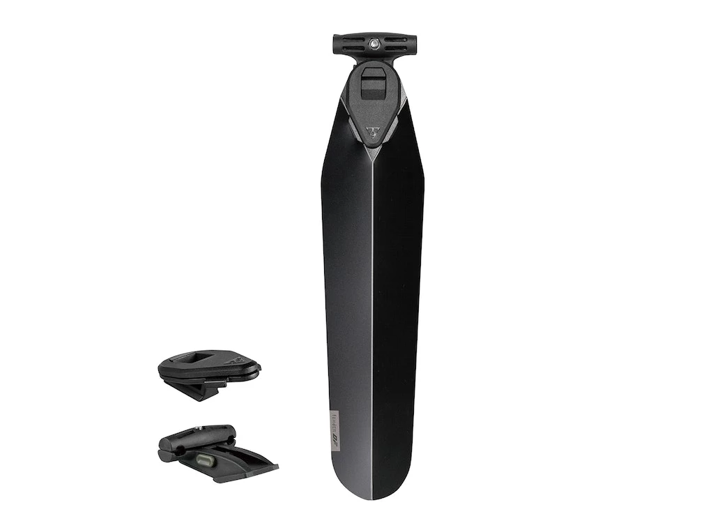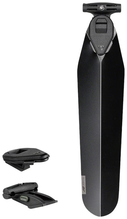Durable polypropylene fender is ultralight, stylish, and simple to slide and click then ready to go when wet weather arrives. Included Duo Fixer allows fast and easy tool-free mounting and removal and provides dual use with Topeak Duo Fixer system accessories, including Topeak QuickClick saddle bags or most strap type saddle bags, Tubi tools, CO2 inflators, and lights underneath the saddle. Black and transparent colors with exchangeable upper and lower backets as a set for the color options and mounting position option to suit different needs.