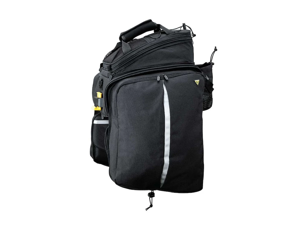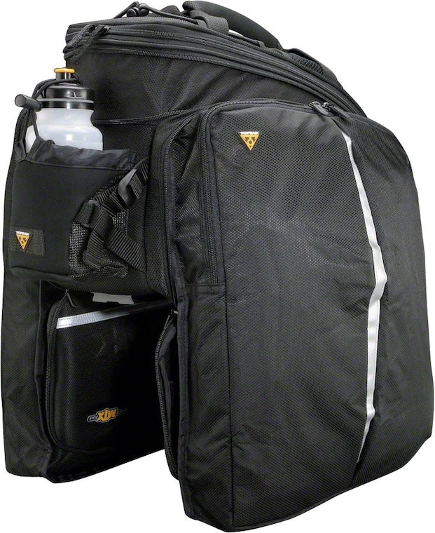 The MTX TrunkBag uses a unique material process to provide our largest, stiffest, & most weather resistant MTX series bag. In addition to the expandable top section & rear water bottle holder, the side panels expand to full panniers maximizing capacity. Compatible with all MTX QuickTrackโข racks with attachable side frames. MTX Dual Side Frames are required when using panniers on MTX BeamRacks.