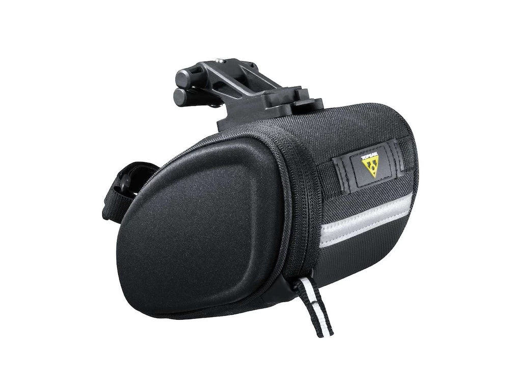 A new idea in wedge pack construction combines molded side panels with flexible 600 denier fabric to form semi rigid, weather resistant saddle bag. A large, side-opening panel provides easy access to all your under saddle gear. Internal mesh pockets keep keys & small tools in place while riding. QuickClickโข compatible for fast, easy transfer between bikes.