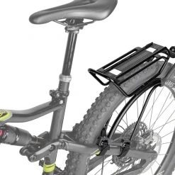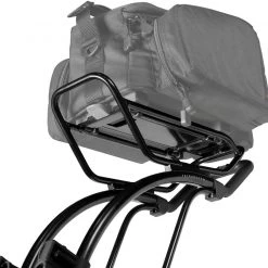 The perfect quick-mount rear rack system attaches to MTB full suspension seatstays or hardtail MTB without rack eyelets. This one-size-fits-all rear rack features an innovative top plate that adjusts to level independent of the seatstay angle. Integrated QuickTrackยฎ system allows Topeak TrunkBags to slide and lock into place and release with a the push of a button. Innovative hook and loop strap mounting system cinches down tight to keep the load stable and allow mounting on a wide range of bikes. Also compatible with KLICKfixยฎ / RackTimeยฎ Snapit 1.0 or Vario system bags.