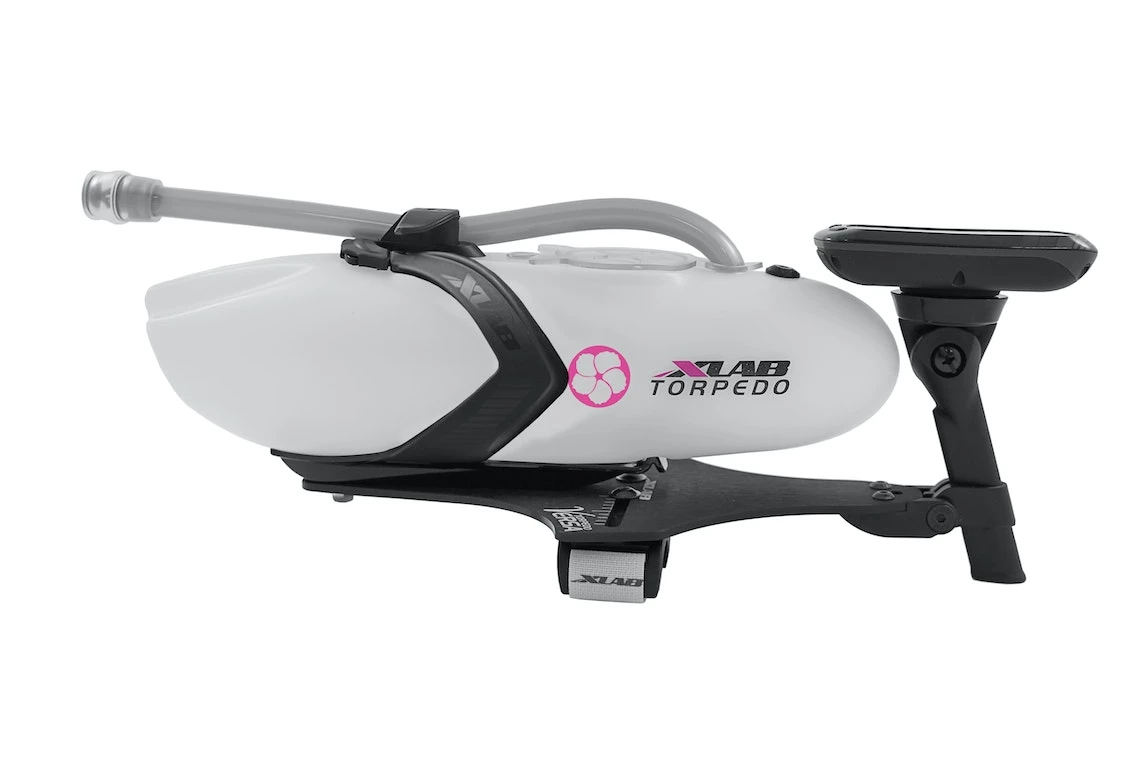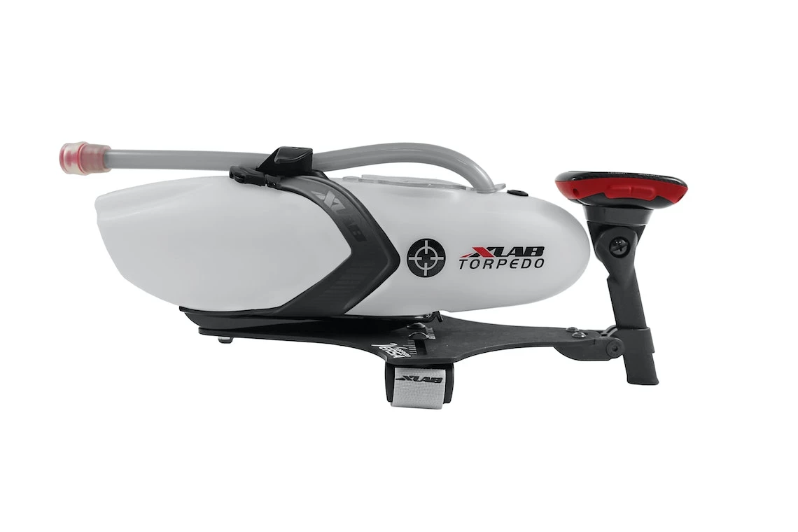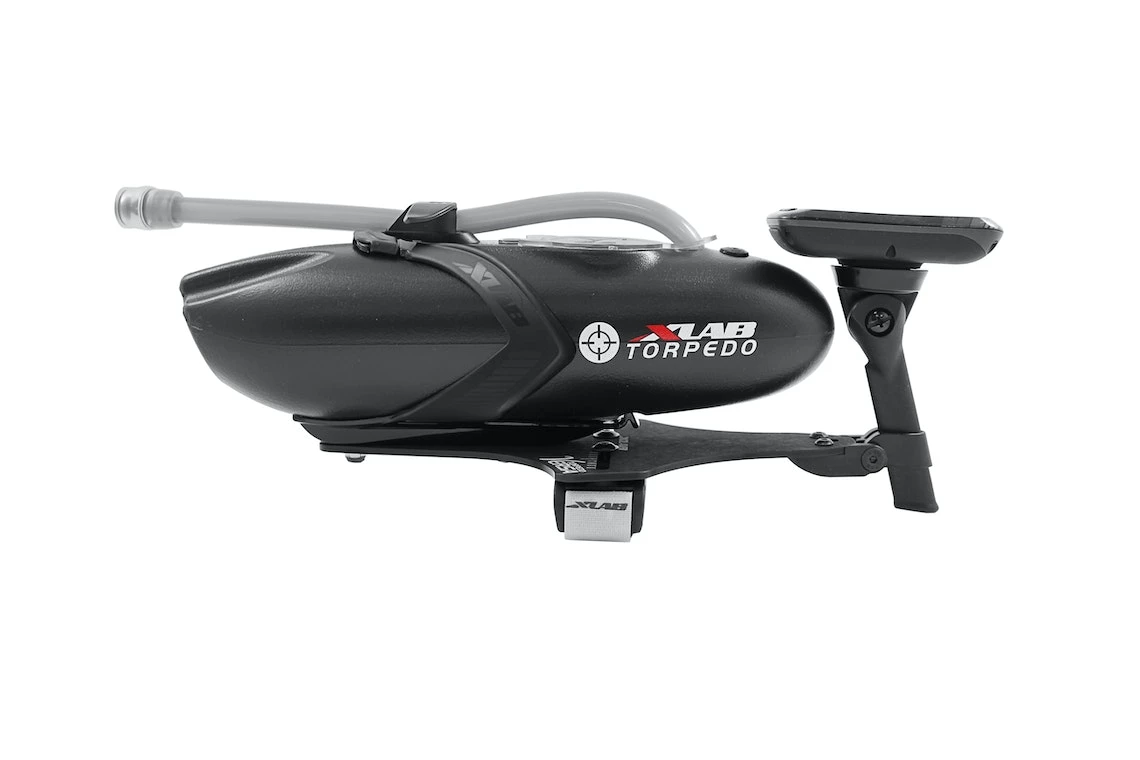 Durable, aluminum aerodynamic aerobar hydration system with telescoping computer mount. Raise the computer mount up to tuck in a Refill Bottle for race day, or lower it down for a standard bottle to maintain the optimal view for training days. Includes composite mounting clamps, aluminum plate, plastic Vee cage & Torpedo bottle with 2 lid options.